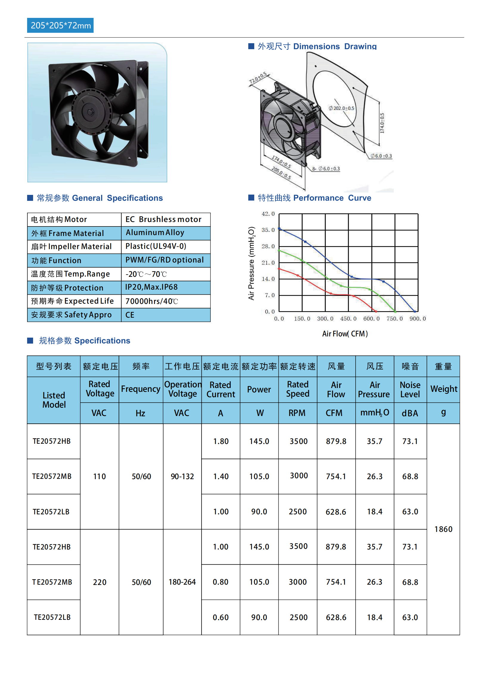 205×205×72mm